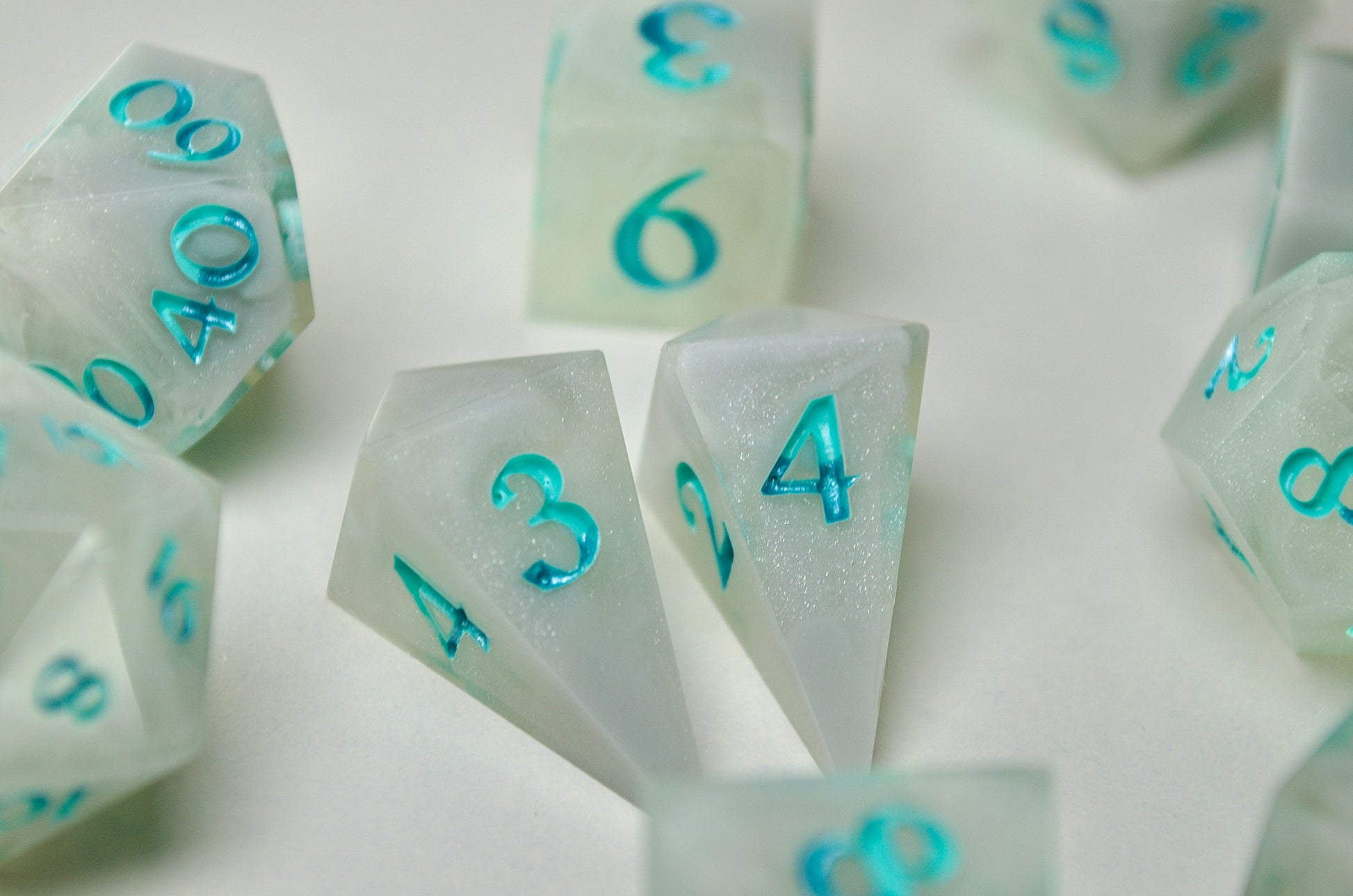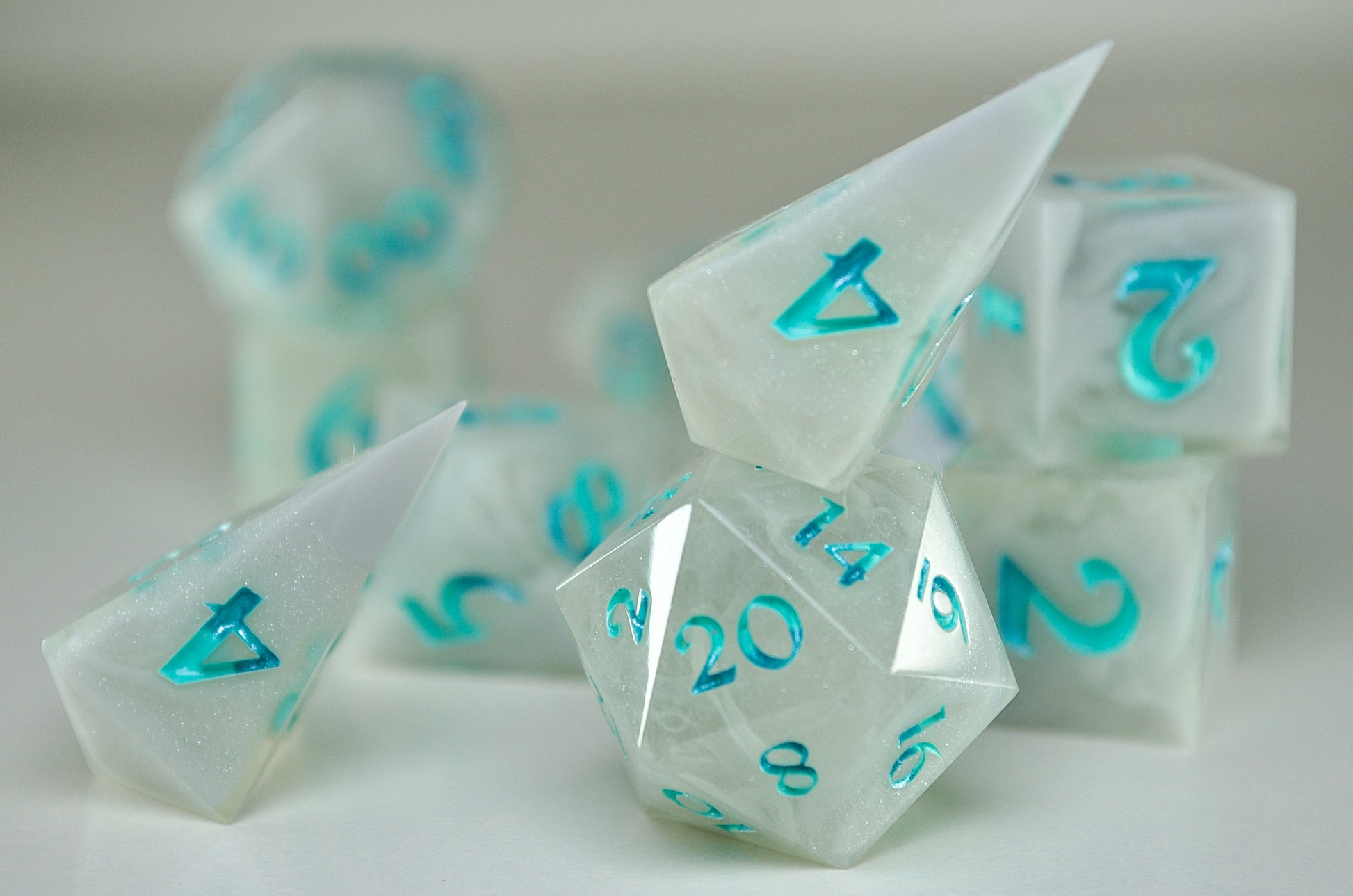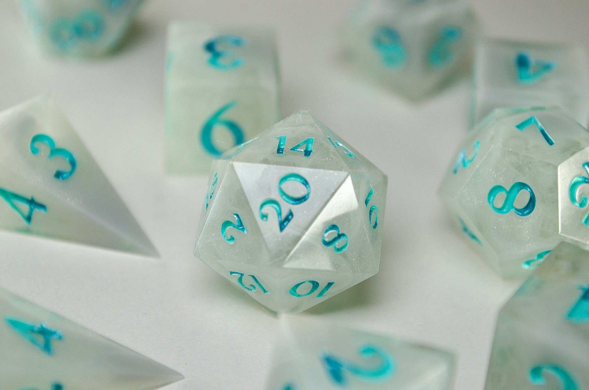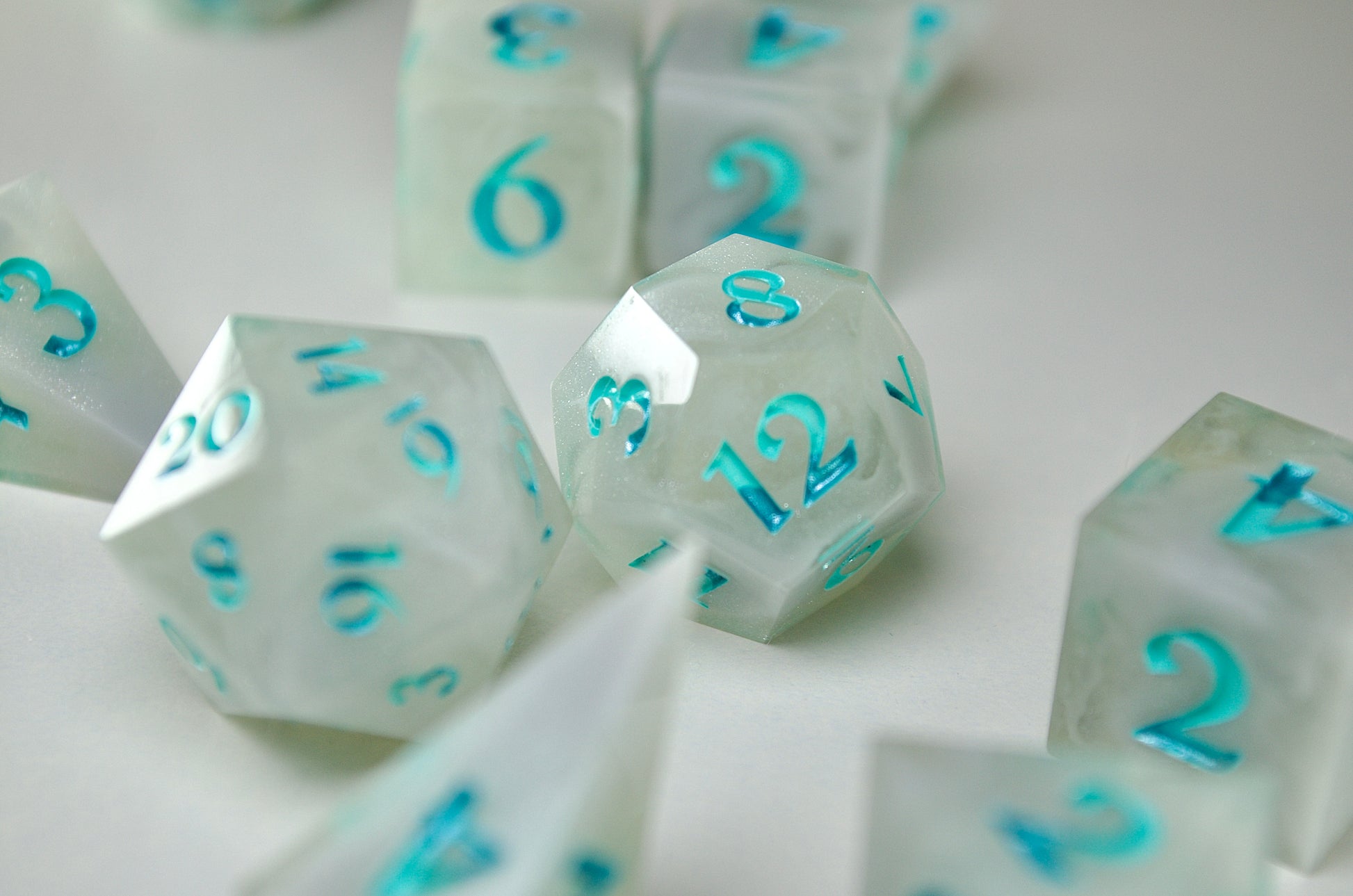 There is so much care and attention to detail in the way these dice have been poured to the high shine polish. Absolutely adore the florals and the bright, vibrant green! Looking forward to picking up another set!